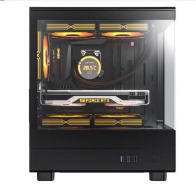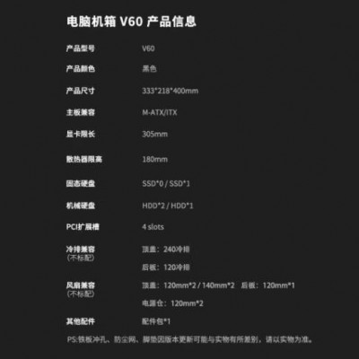 爱国者V60 海景房机箱全景无立柱MATX高颜值240水冷台式电脑台式机主机箱 黑色(显卡限长305mm)