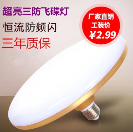 飞碟灯led灯泡E27螺口大功率家用室内光源超亮节能灯工厂车间照明 E27螺口【合金款】 【15W白光】直径95mm